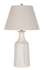 The Eastlake Table Lamp exudes a quiet elegance with its ceramic cream lamp body, offering a smooth, subtle texture and a soothing color that can blend into various decors. The body's gently tapered shape is both graceful and poised, creating a sense of delicate sophistication. This is topped with a fabric lampshade in a matching hue, which diffuses light to cast a warm and inviting glow, perfect for creating a cozy and relaxing ambiance in any room. The neutral cream color and the simple yet chic design make the Eastlake Lamp a versatile addition to any living space.