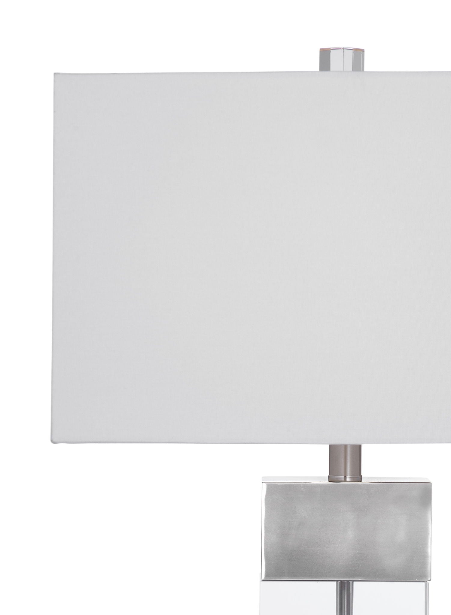 The Elara Table Lamp brings a touch of glamour to any table with its silver striped design and shimmering crystal accents. Perfect for both traditional and contemporary spaces, this lamp offers subtle illumination and timeless elegance. Paired with a crisp white rectangular linen shade, it adds a sophisticated charm to your decor. Illuminate your space with the Elara Table Lamp, a chic and versatile fixture that elevates any room with its understated luxury.