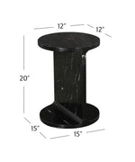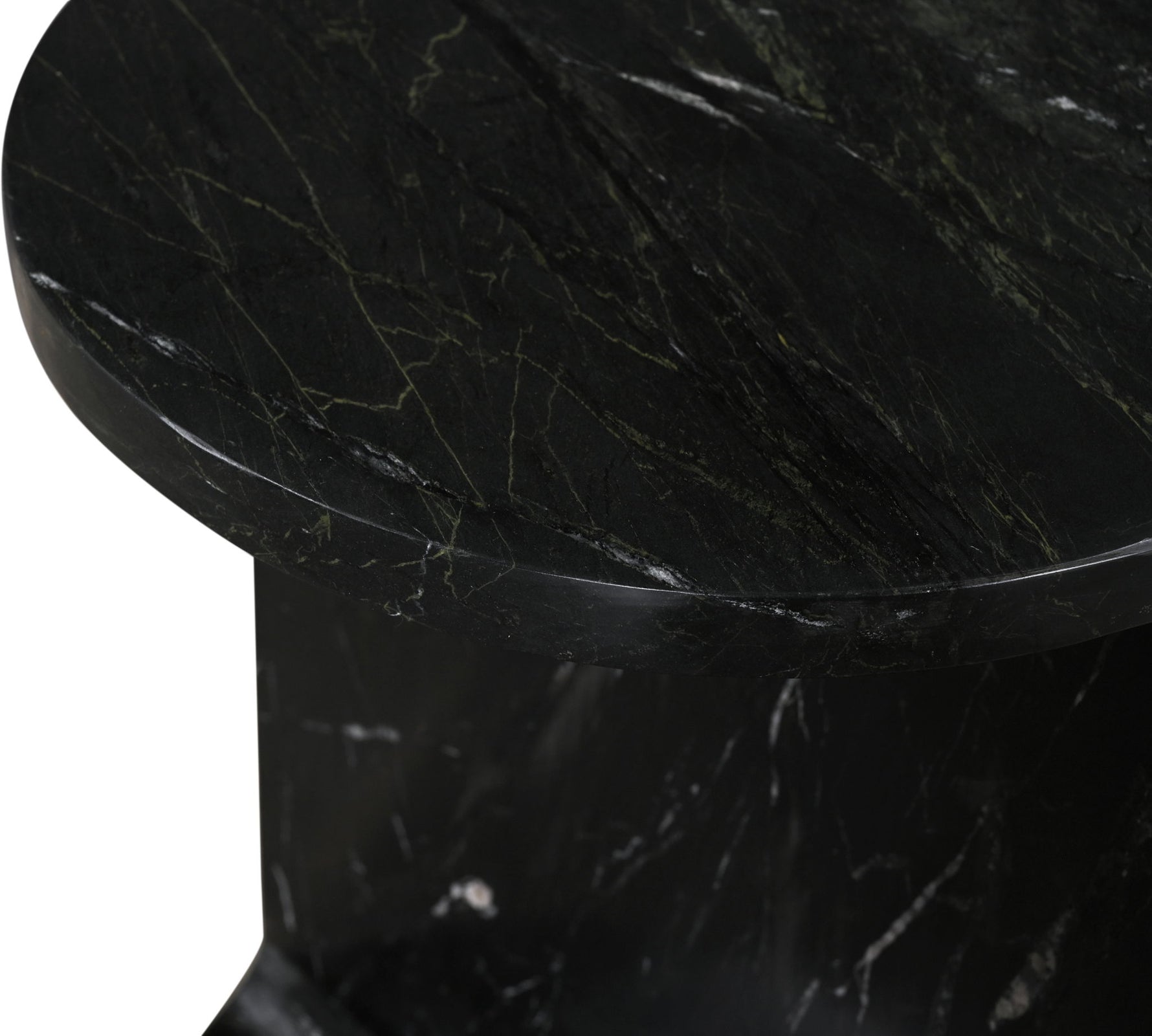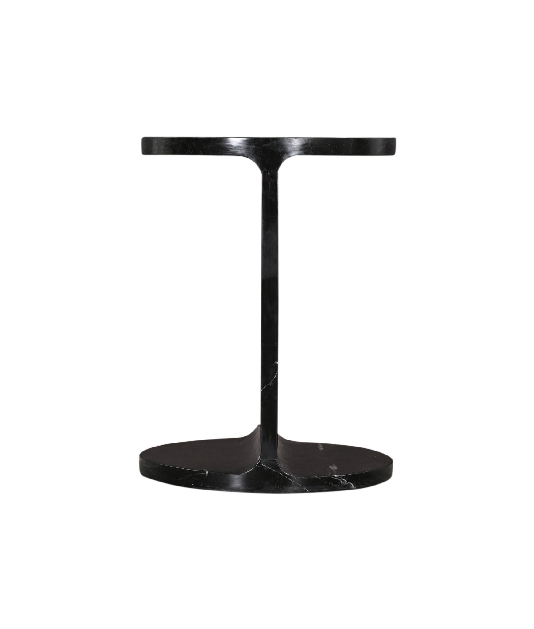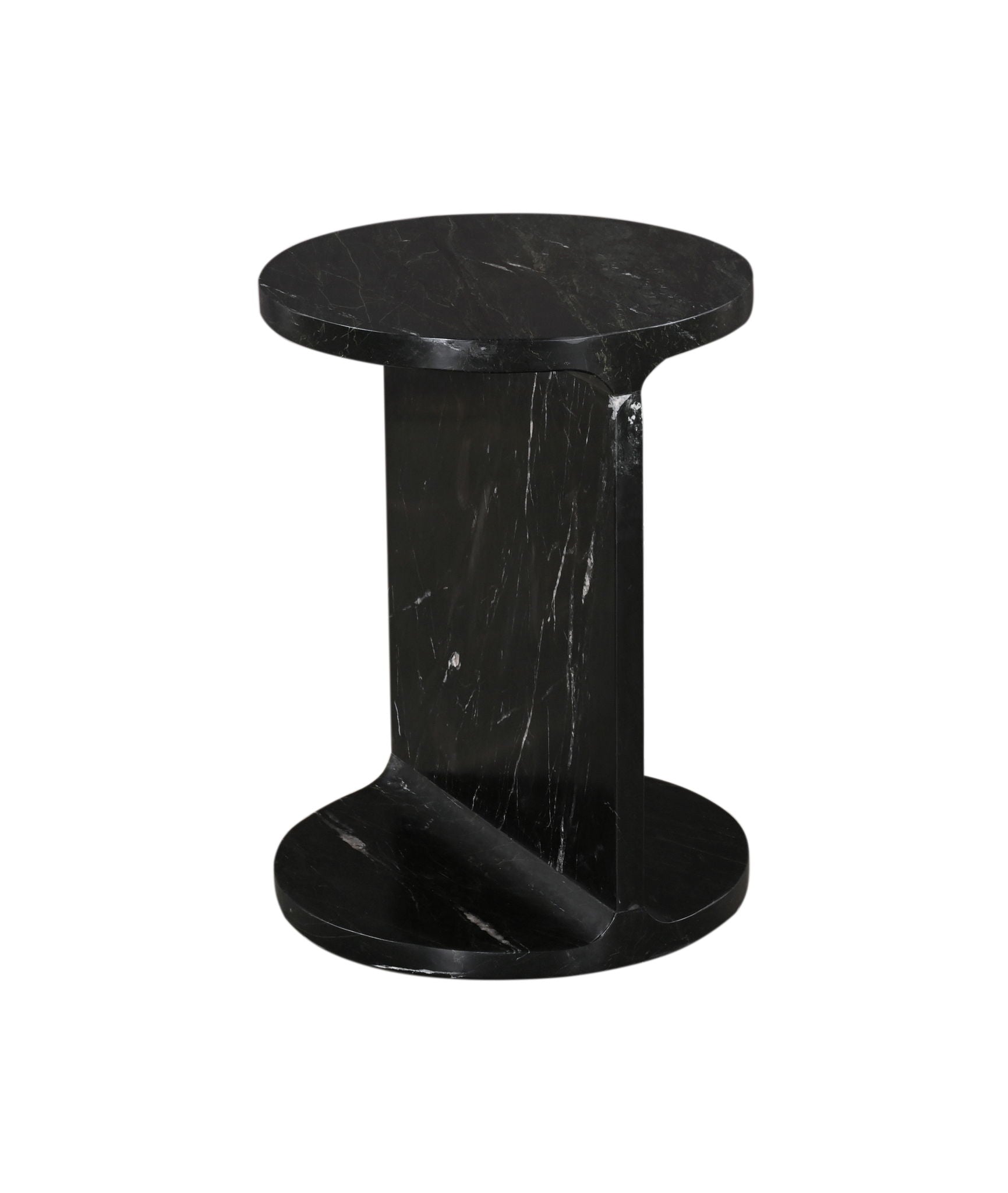 The Emmett Black accent table boasts a modern and contemporary design, perfect for elevating any living space. Crafted from solid black marble, its I-beam inspired construction exudes sophistication and durability. With clean lines and a sleek black marble finish, this table adds a touch of elegance to any room. Each piece is unique due to the natural variations in the marble, ensuring that your accent table is one-of-a-kind.