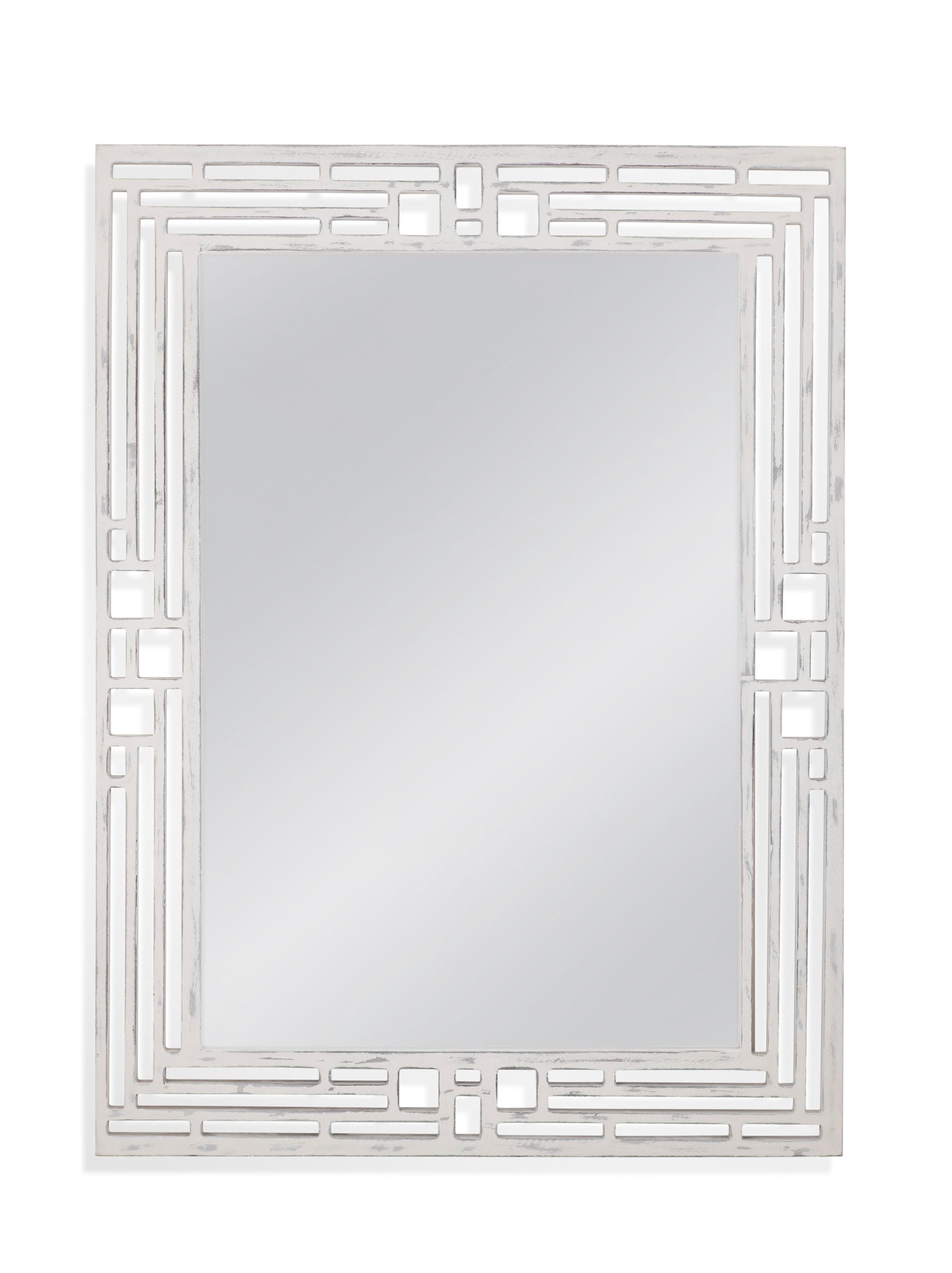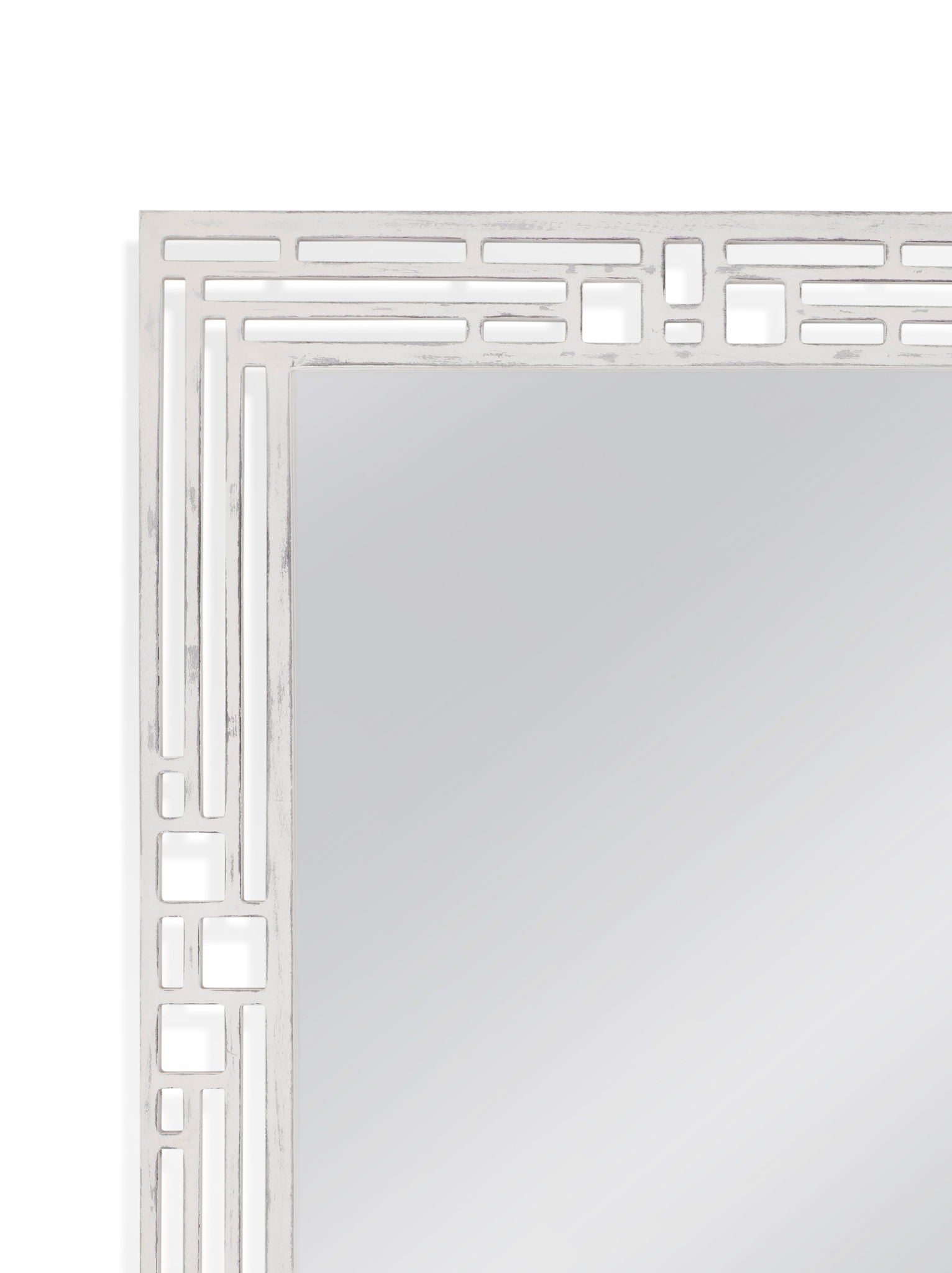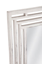 The Epsilon wall mirror is rectangular with a cutout geometric frame.