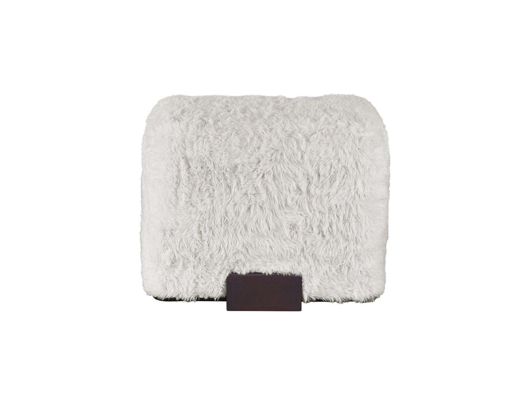 Make a subtle statement with this super soft ottoman, covered in Yakety Yak fabric and accented with a dark walnut finish.