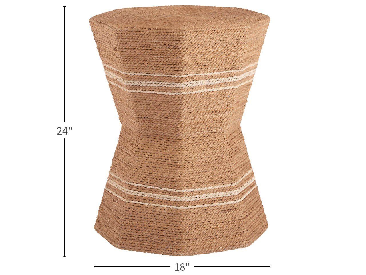 The Octagonal Side Table showcases a uniquely inverted pedestal shape encased in layers of wrapped abaca, creating a pleasant accent piece with delightful two-tone details.