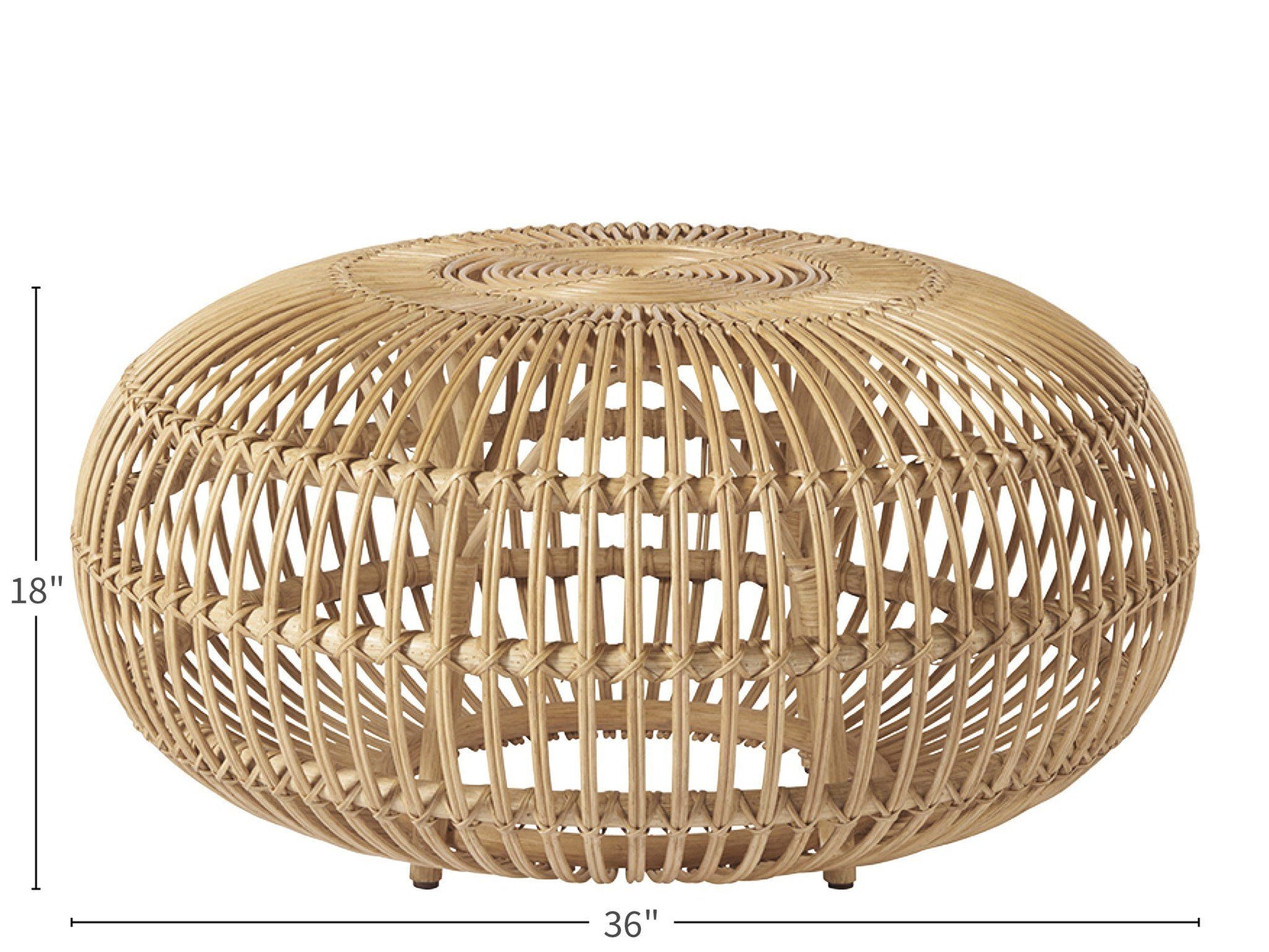 Exuding a casual yet softly bohemian flair, the Rattan Scatter Table instantly invites a richness of texture into spaces while still remaining functional with a leveled surface top.