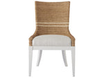 A gorgeous fusion of texture and tone, the Siesta Key Dining Chair is crafted with a woven abaca back and upholstered seat, and finished with chicly tapered legs in a white finish.