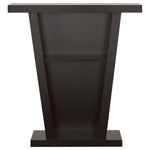 Angular in shape, this console table offers a dynamic design meant to impress. Dress up a transitional room with a space for displaying books, decor, or potted greenery. Luscious cappuccino offers a bold, dynamic finish. An eye-catching slanted silhouette creates a visual treat. Add this console to a central living space or an entryway.