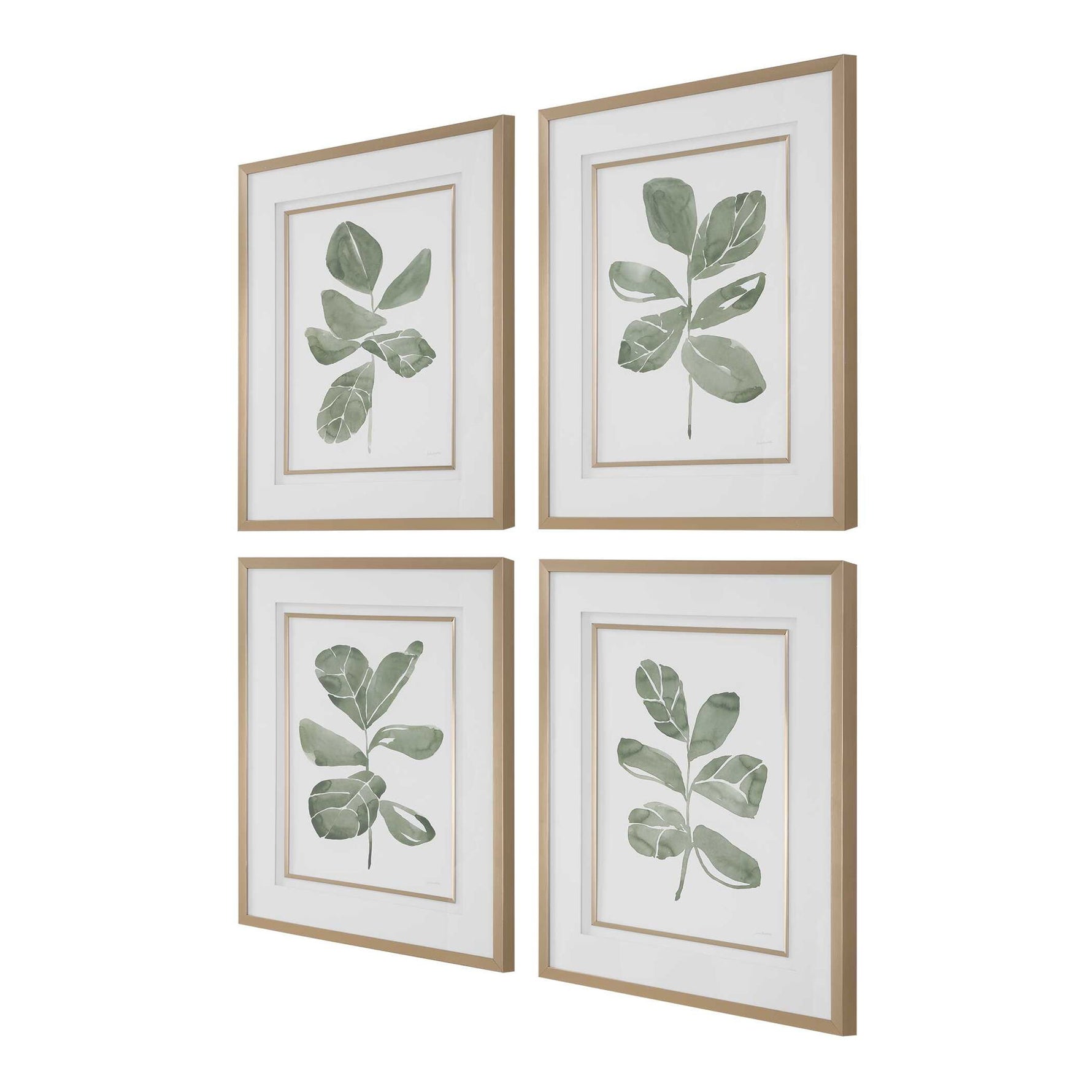 Fiddle Head - Leaf Botanical Prints (Set of 4) - Gold / Green / White