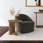 Beautiful mango wood construction sets a refined but organic tone for the sculpted silhouette of a modern end table. It's designed to make an impact in surrounding decor in your living room, entry, or den. This table boasts a solid rectangular support with an L-shaped leg that adds depth and visual texture to surrounding decor. Its rounded rectangular tabletop is spacious and sturdy, creating the perfect place for refreshments, a lamp, or a decorative piece that brings personality to your space. The table is complete with a warm brown finish that highlights the beautiful dimensionality and grain details of the wood.