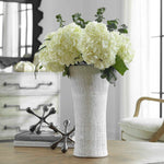 - The Beauty Of The Floreana Ceramic Vase Is In Its Etched Surface. Smooth On The Inside And Pleasingly Textured On The Surface. The White Surface Is Made More Interesting With The Scratched Finishing Technique To Add Some Texture To Your Favorite Blooms. Style With Dried Foliage And Florals Or As A Decorative Sculptural Vessel.