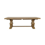 This rectangular extension dining table blends classic European elegance with artisan craftsmanship. Crafted from solid pine, it features a double pedestal trestle base that exudes romantic charm and timeless character. The sculpted pedestals, connected by a wide plank accent, create a striking focal point with an authentic handcrafted feel. A planked tabletop enhances its rustic appeal, while two 16-inch removable leaves extend the table up to 126 inches, making it perfect for gatherings large and small. Built for both beauty and durability, this table is an inviting centerpiece for any dining space.