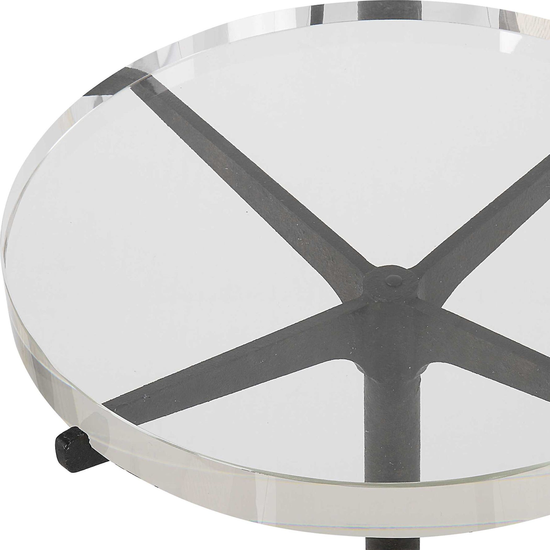 - Inspired By Classic Industrial Style, The Forge Accent Table Is Finished In A Textured Rustic Brown Topped With A Clear Crystal Tabletop.