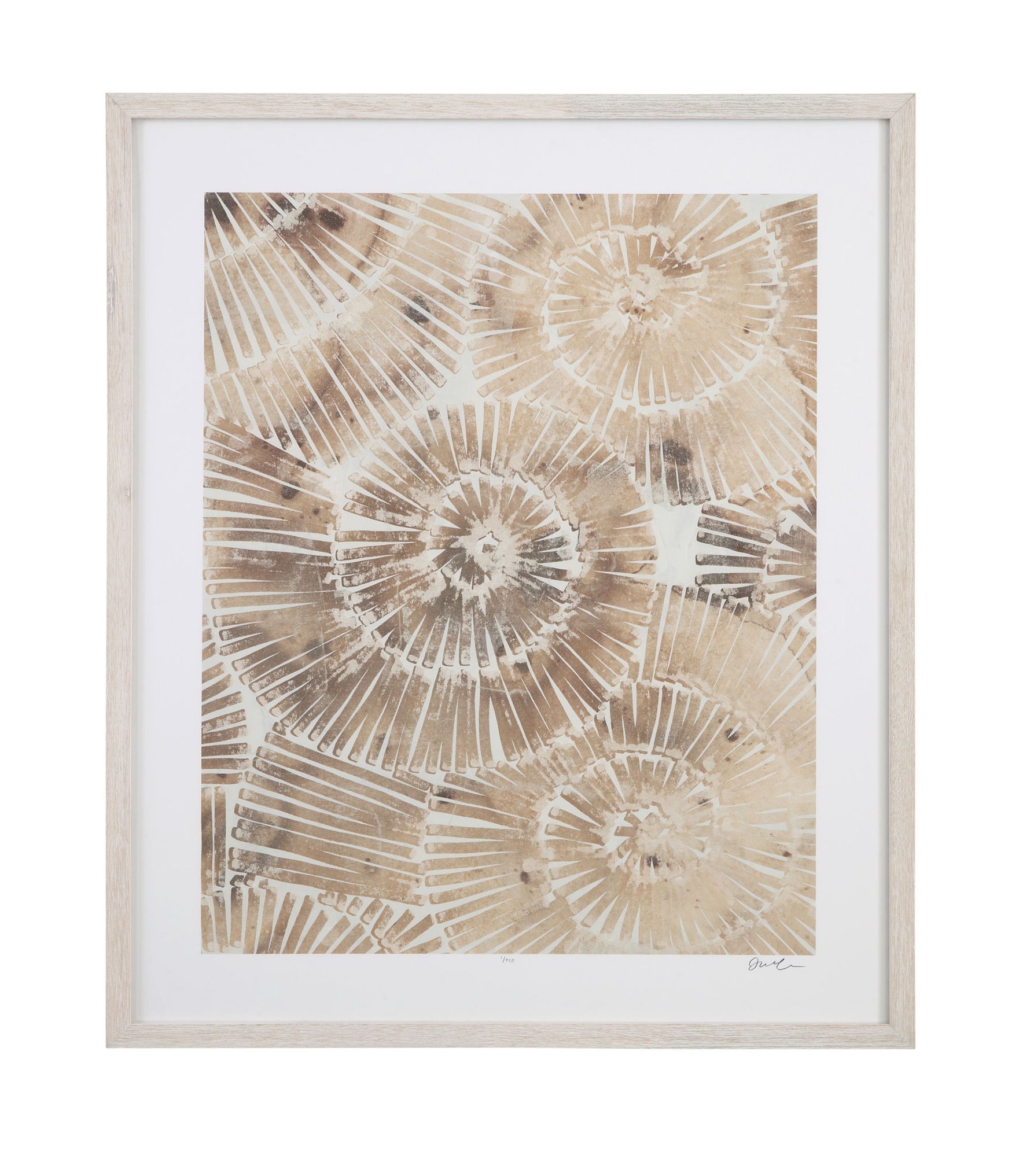 Fossil Nautilus II is a limited edition print, signed and numbered by the artist and printed on fine art cotton rag paper. The print is framed in a 1" rustic barnwood frame.