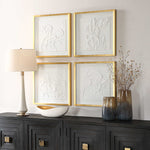 Hand Painted Abstracts, These Elegant Pieces Of Art Exhibit Thick Dimensional Texture And An All-white Color Pallet. A Light Gold Finished Shadow Box Frame Under Glass Surrounds Each Piece. Due To The Handcrafted Nature Of This Artwork, Each Piece May Have Subtle Differences. May Be Hung Horizontal Or Vertical.
