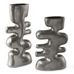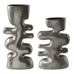 - Set Of Two Ceramic Vases Embrace The Iconic Look Of Modern Décor. These Decorative Vases Feature A Free Flowing, Carefree Design Finished In A Tarnished Nickel Glaze. Suitable For Placement In Most Any Room, These Can Simply Be Displayed Alone Or Add Some Florals For A Touch More. Sizes- S- 8x12x4, L- 7x14x4