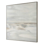With Its Seamless Blend Of Moody, Earth Tones In Gray And Beige, The Furthest Thing Beckons The Viewer to Contemplate The Unknown. This Piece Is Surrounded By A Thin, Gray Washed Wooden Frame. Due To The Handcrafted Nature Of The Artwork, Each Piece May Have Subtle Differences.