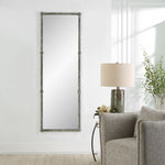 - This Mirror Showcases A Traditional Design With Channeled Frame And Medallion Accents Featuring A Patinaed Finish Of Weathered Verdigris Green With Rustic Black Undertones, Antique Distressing And A Light Gray Wash.