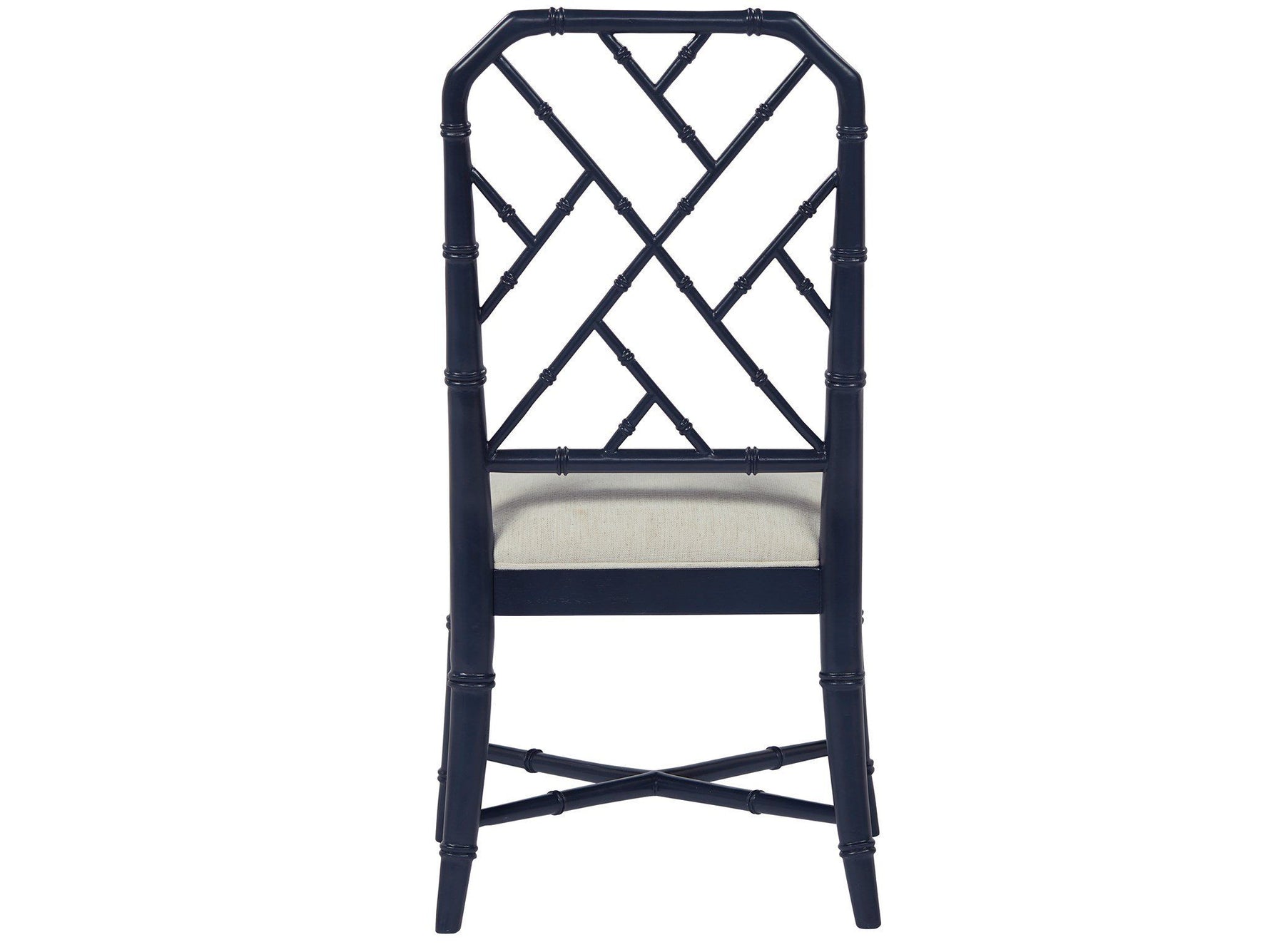 The bamboo-inspired Hanalei Bay Side Chair combines a subtly textured silhouette and a plush upholstered seat to create a stunning complement to any table.