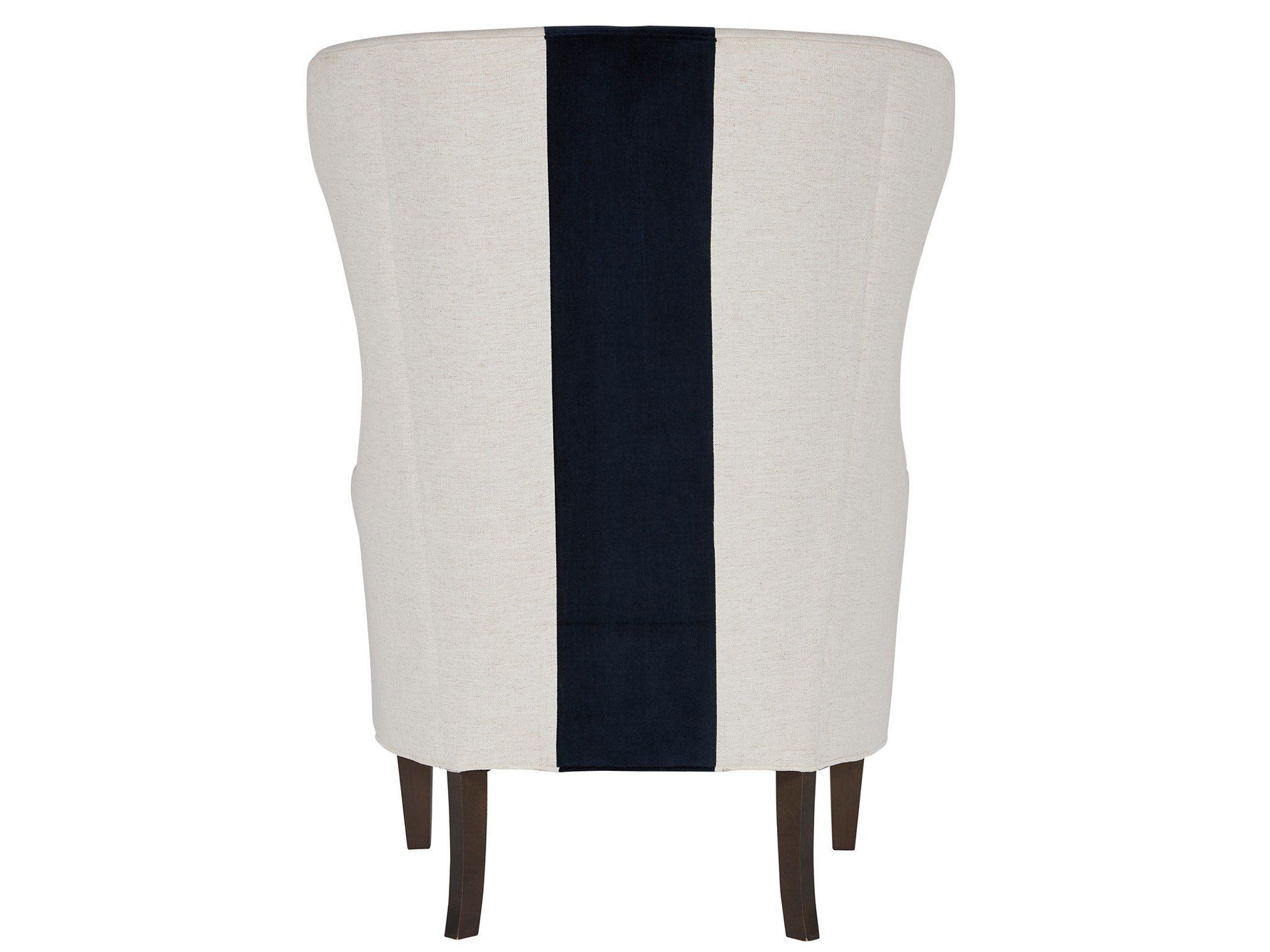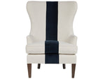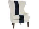 Unit price perA daring, vertical navy stripe defines the Surfside Wing Chair, a regal upholstery furnishing featuring an exaggerated back and tapered legs.
