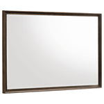 Augment your stylish dresser with a modern framed mirror. Perfect for the dresser top, it mounts directly and features a warm brown wood finish. The mirror boasts beveled glass for added depth, complementing its stylish reflectivity and depth. Mitered trim creates a slim frame that adds definition. Add a beautiful vase and flowers to complete the look.
