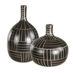 Elevate Your Home Decor With These Striking Black Ceramic Vases, Featuring A Sleek Geometric Design With Contrasting Ivory Lines. Perfect For Modern And Contemporary Spaces, These Handcrafted Statement Pieces Add Sophistication And Artistic Flair To Any Setting. Sizes: S-10x10x10, L-8x14x8