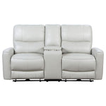 Contemporary elegance plays out in a clean, modern design as the power loveseat delivers beauty and comfort to a space reserved for easy entertaining and relaxing. Leatherette upholstery covers wood framing to provide a sturdy build, embellished with plump foam filled in tall, attached back cushions and supportive seat cushions. Subtle tufting cradles body positioning, aided in luxurious comfort by power reclining at the touch of a button on a switch panel with a convenient USB port. Store remotes and accessories in a flip-top console and keep beverages handy with dual cup holders. This power loveseat is all that's needed for a relaxing day or evening.