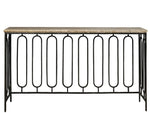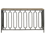 Unit price perThe Griffith Park Console is a stunning blend of natural and industrial elements. Its slender Gray Tavertine stone top, with its subtly chipped edges, contrasts elegantly with the intricate, oval-shaped, oil-rubbed bronze metal base. This captivating piece is a true work of art, sure to be a focal point in any room.