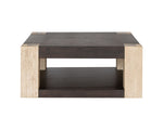 The Harmony Cocktail Table embodies a blend of contemporary and modern aesthetics, making it a statement piece for any living room. Crafted from sturdy wood and veneers, its blocky design is minimalist yet striking. The table showcases a captivating contrast between the carbon mindi and blonde acacia finishes, adding depth to its appearance. With wirebrushed legs and simulated dovetail joint designs on the tops, it exudes sophistication and attention to detail. Additionally, the inclusion of a bottom shelf not only provides extra storage but also conceals casters, ensuring effortless mobility. Thanks to the manual wire-brushing process, each piece boasts unique textural variations, enhancing its appeal. Elevate your space with the Harmony cocktail table, a testament to minimalism and contemporary elegance.