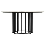 This round table showcases a perfect blend of modern design and functionality with a genuine marble top and sturdy iron base. The bold, open vertical rod design gives the table a striking yet minimalist appeal. Its spacious marble surface offers ample room for serving, display, or decorative pieces, making it a stunning centerpiece for any living room.