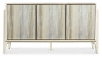 Crafted of Maple Veneers in a serene Almond White finish with reverse painted-glass door fronts in brown, gray and purple tones, the Hera Credenza is a stylistically versatile piece with functional appeal. The three doors have soft-close hinges and touch latches. The left and center door both have one adjustable/reversible wood shelf with wine bottle storage option. Each shelf will hold up to 4 bottles. Wire management and ventilation is offered behind both the left and center doors. The right door has two drawers, and the bottom drawer is a file drawer.