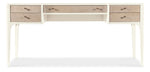 Unit price perContrasting a serene Almond White finish with Figured Maple Veneers on the top, drawer fronts and sides, the Hera Writing Desk has a classic silhouette and is loaded with function. There are 5 drawers and a removable/interchangeable writing surface and pencil tray that can be used on either side top drawer. Each of the top drawers has two removable partitions. The center drawer has a drop-front writing surface with wire management. Two bottom utility drawers. The matched veneer top is striking. Small gold metal pulls.