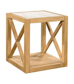 The Holden Square Coffee Table effortlessly combines modern sophistication with traditional craftsmanship. Crafted from solid wood and oak veneers in a warm sunlit oak finish, it exudes elegance and timeless appeal. The inset white Carrara marble veneer top adds an elevated touch, bringing both style and luxury to your living space. The open design with bold X-shaped end panels creates a visually dynamic look, while its clean lines ensure versatility in any room. Equipped with casters for easy mobility, this coffee table blends style, function, and sophistication seamlessly.