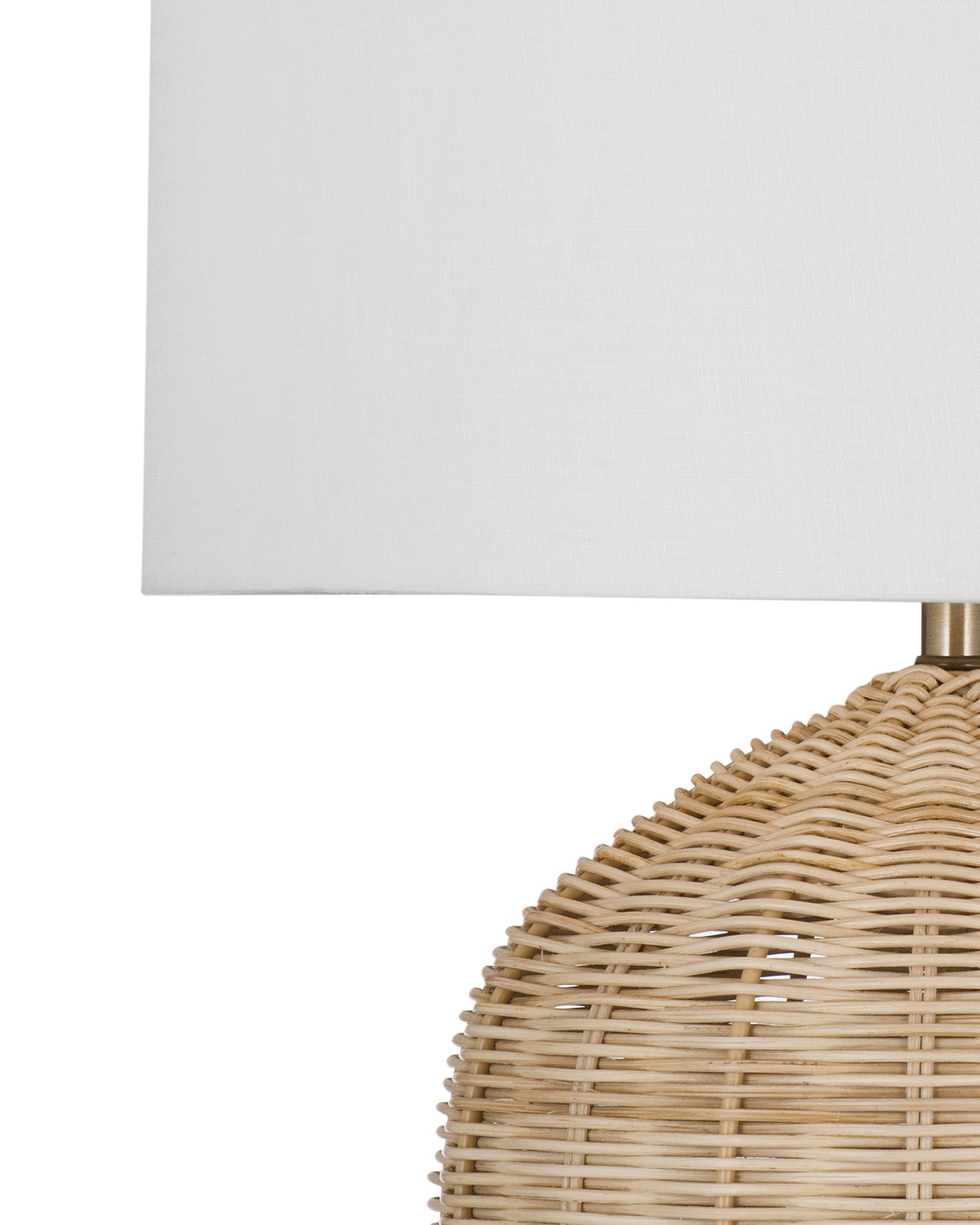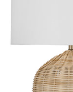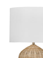 The Holland table lamp features a natural rattan base and a white drum shade.