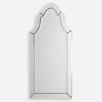 This Frameless, Arched Mirror Has Polished Edges For A Smooth, Clean Finish. The Etching And V-grooves Give Wonderful Character To This Beveled Mirror.