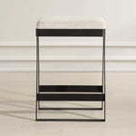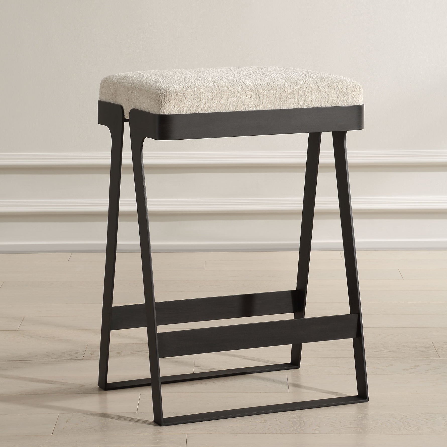 - The Modern Hover Counter Stool Is Streamlined With An Aged Black Curved Iron Base And Cushioned Seat. Upholstered In An Ivory Chenille Boucle Performance Fabric.