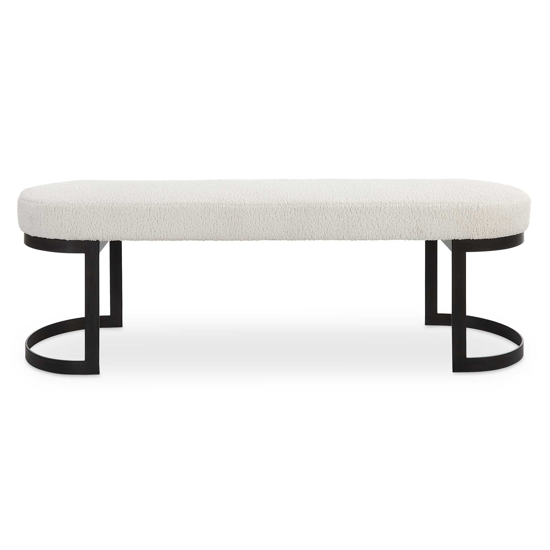 - Merging Simplicity With Style, This Bench Features A Thick Hand Forged Iron Base Finished In Matte Black. The Plush Seat Is Upholstered In Natural Faux Shearling Fabric.