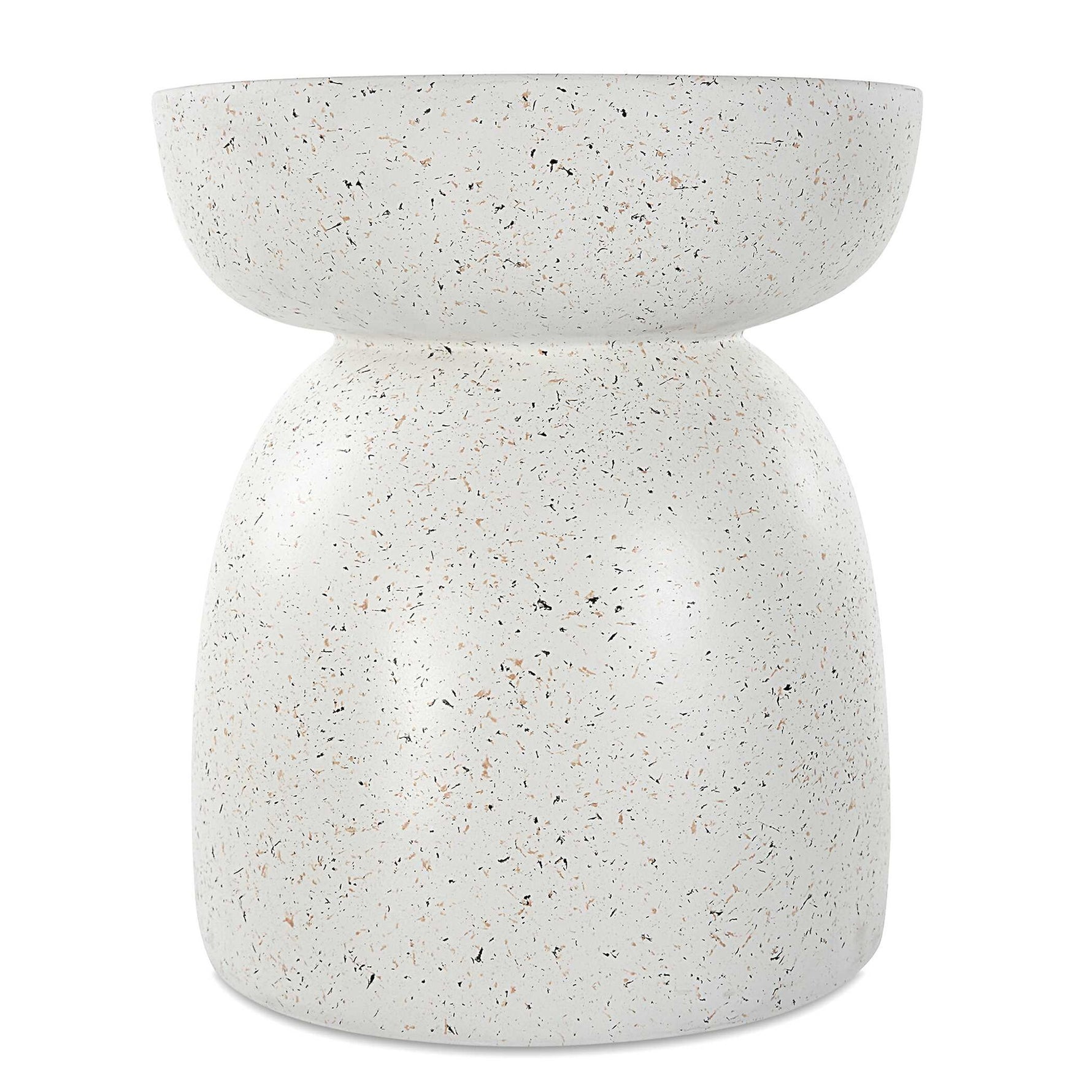 - A Refreshing Accent Table Formed From Cast Resin With A Matte White Finish And Subtle Hints Of Earthy Terrazzo Specs.