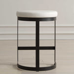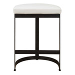 Simplistic But Sturdy, This Statement Counter Stool Features A Thick Hand Forged Iron Base Finished In Matte Black. Plush Seat Is Tailored In A White Pebbled Faux Leather.