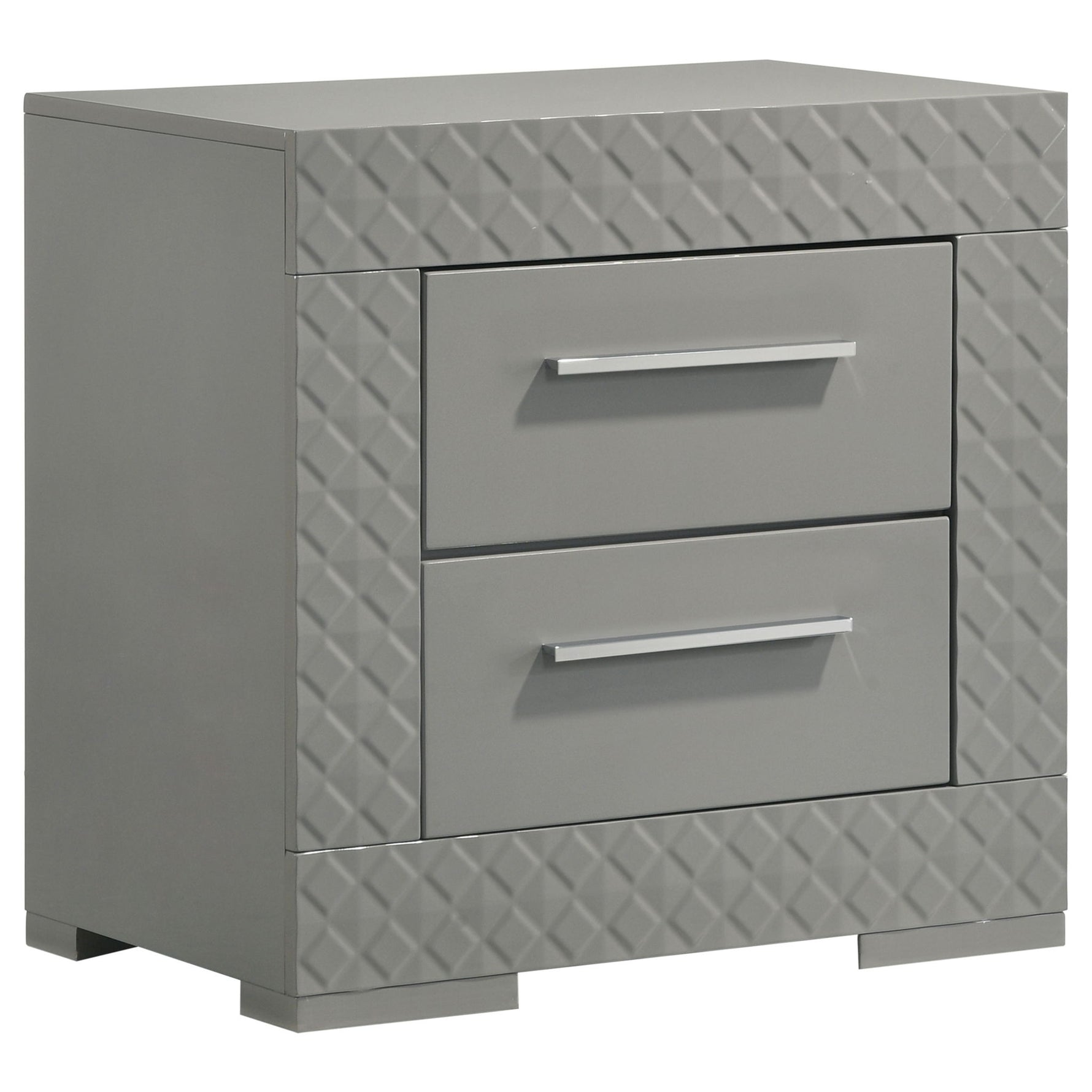 Ives - 2-Drawer Nightstand Bedside Table - Gray High Gloss