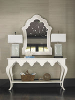 • The Woven Raffia Panel Creates Interest And Texture That Captures The Subtle Parchment Highlights Over The Crisp Whilte Finish.