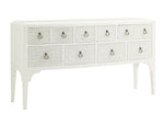 - 7 Drawers With Woven Raffia Front Panels, Top Center Drawer Has 2 Stacking Felt-lined And Divided Silver Trays.