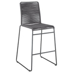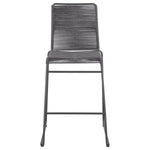 Create visual texture with this contemporary rope woven stool. a tall and slender metal frame in a finish, wrapped in rope around the backrest and seat, offer a restful spot for family and guests at elevated dining areas. the metal frame offers an open, airy feel with its slim seat and angled legs, and extra support with a lower footrest. with a sled-style base, this stool slides gracefully up to a bar top or counter height tabletop for drinks, meals and more. lastly, a dark hue throughout creates a dramatic, natural vibe for modern farmhouse and boho-inspired homes.