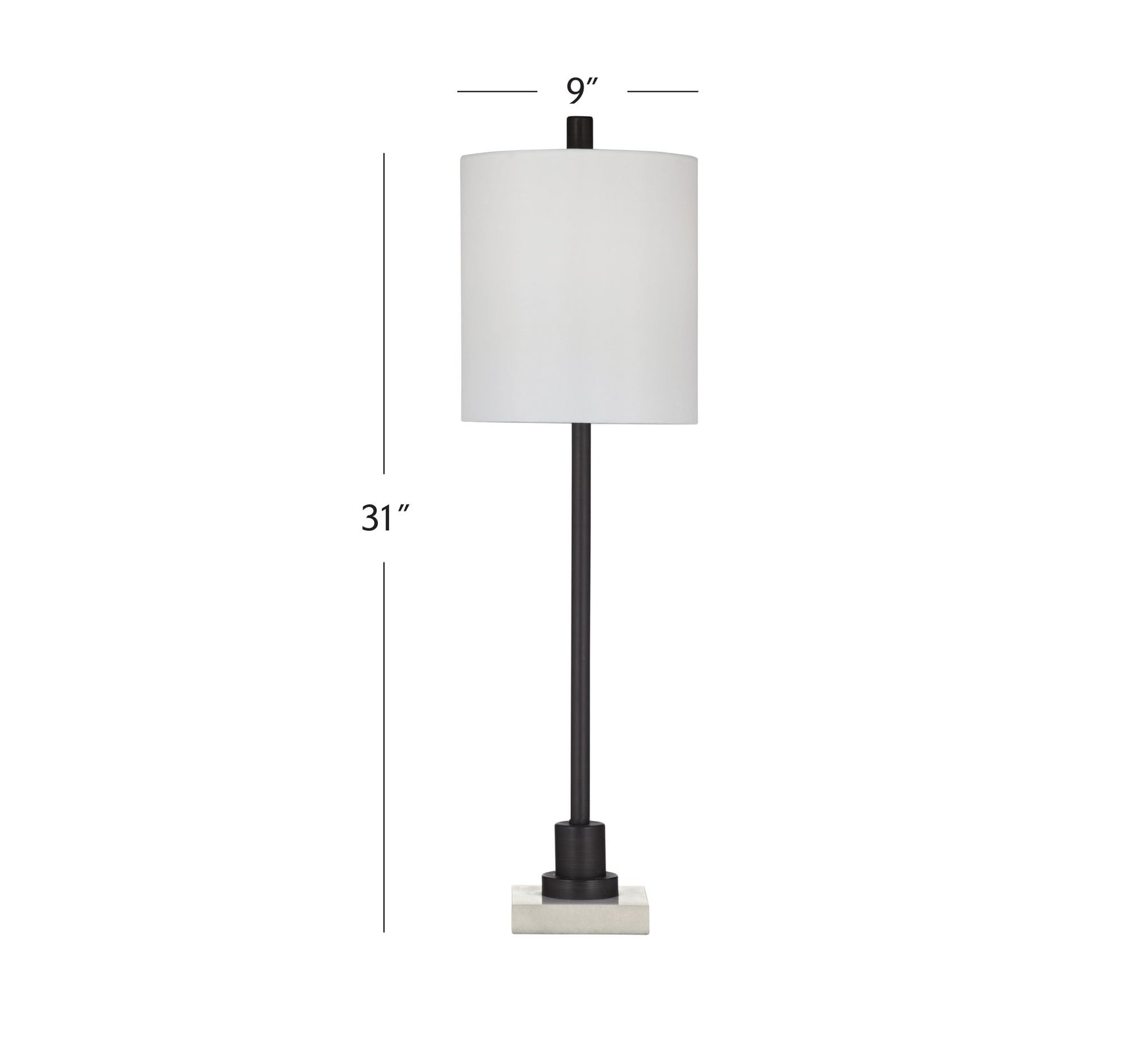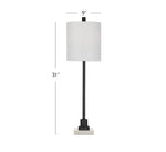 Elevate your home ambiance with the Jess Table Lamp, where modern design meets timeless elegance. The slim bronze lamp body gracefully rests on a square white marble base, creating a harmonious blend of sophistication and style. The drum-shaped lamp shade, crafted with white linen, adds a touch of warmth to your space. With a generous 60-inch lamp cord, you have the freedom to place it wherever it complements your decor. Illuminate your living space with the subtle beauty of the Jess Table Lamp, a perfect addition to your contemporary home.