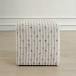 Serving As Both A Standalone Accent Piece Or Functional Seating, The Joie Ottoman Is Sure To Add Comfort And Style To Your Space. Covered In An Ultra Plush White Chenille Stripe Over A Flax Ground With A Fun Dot Of Sea Blue.
