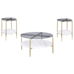 Jonelle - 3 Piece Round Coffee And End Table Set - Gold / Smoke