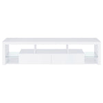 Elevate your entertainment realm with our sleek, modern TV stand. With a pristine glossy white finish and clear glass accents, it exudes elegance. Beyond looks, it's the epitome of functionality. Soft-close drawers glide effortlessly, housing your gadgets, while the glass shelves offer a stylish display. Spacious storage compartments keep your media essentials neatly organized. This stand, a harmonious blend of style and function, becomes an indispensable centerpiece for any contemporary entertainment space.
