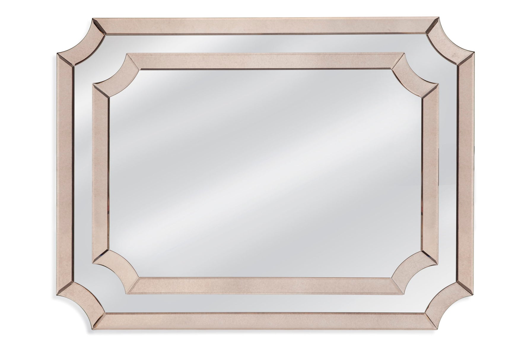 The Jules Wall mirror is an all glass design that features an antique mirror border and overlay over clear mirror.