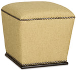 This delightful ottoman features a welt and 3/4 inch brass nailhead trim. From family rooms to bedrooms, living rooms to entryways, there are plenty of ways to incorporate these versatile pieces into your home. A chaise can create a dramatic focal point in a room, while a settee can provide small-scale seating for a variety of spaces. Complete your room design with one of our decorative ottomans, which come in a variety of shapes and styles. These multipurpose gems can serve double duty as a cocktail table substitute or a decorative footstool for a sofa or accent chair.