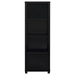 Immerse yourself in the sleek sophistication of this media tower bookcase, a beacon of organization and style. With three tiers of shelving, it presents a stage for your cherished books and collectibles, turning clutter into a curated display. Below, a single-door cabinet offers concealment for items best left unseen, its handle designed for versatility to suit your spatial needs on either side. This piece is not just a bookcase; it's a statement of functionality, wrapped in a silhouette that speaks of minimalist elegance and a commanding presence.