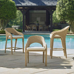 The Kavali Bar Stool Showcases A Curvaceous Frame, Crafted From Hand Wrapped, All-weather Wicker In A Natural Honey Finish. The Plush Cushion Is Upholstered In Oyster White Solution Dyed Acrylic Fabric That Is Constructed To Withstand The Moisture And Dirt That Comes With Outdoor Use.