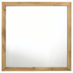 Enhance the functionality and style of your dresser with this elegant dresser mirror. Featuring a weathered brown and natural pine finish, it perfectly complements the mid-century modern and rustic design of the dresser. The mirror's frame is crafted from durable engineered 3D paper veneer, providing a textured wood grain feel that adds visual interest. This dresser mirror is the perfect finishing touch to complete your bedroom's sophisticated look.
