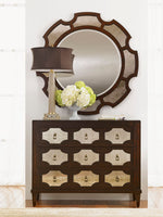 Unit price perThe infusion of today’s lifestyle keeps Kensington Place on-trend and relevant by allowing a new generation to make a statement of personal style. Graceful saber legs, scalloped corners and antique mirrored fronts impart a fresh look to new traditional style. Designs are crafted from Ribbon Stripe Mahogany in a rich Brentwood finish. Burnished brass pieces and plush upholstered seating pull the new-traditional look together.